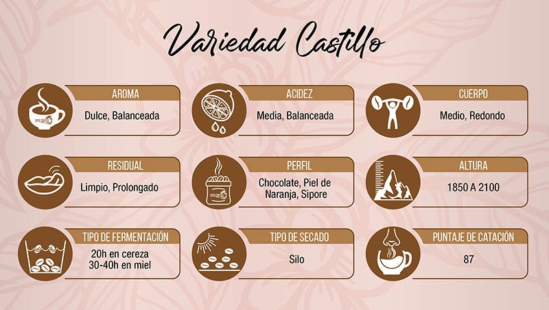 Descripción: Café con un proceso lavado, con fermentación prolongada del cual se obtiene un producto de excelente calidad con un perfil a flor de café, durazno, una acidez jugosa y un cuerpo cremoso.