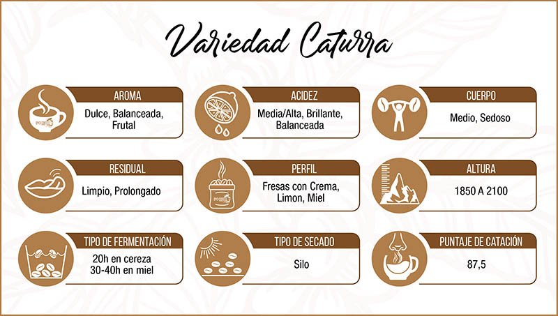 Descripción: Café con un proceso lavado, con fermentación prolongada del cual se obtiene un producto de excelente calidad con un perfil a te de rosas, aromática de frutos amarillos, una acidez jugosa/tartárica y un cuerpo sedoso/cremoso.