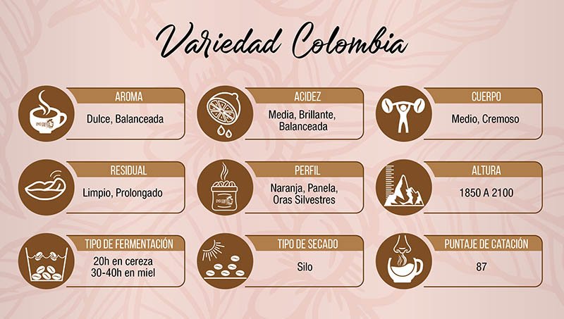 Descripción: Café con un proceso lavado, con fermentación prolongada del cual se obtiene un producto de excelente calidad con un perfil a flor de lavanda, aromática de manzanilla, una acidez jugosa y un cuerpo cremoso.